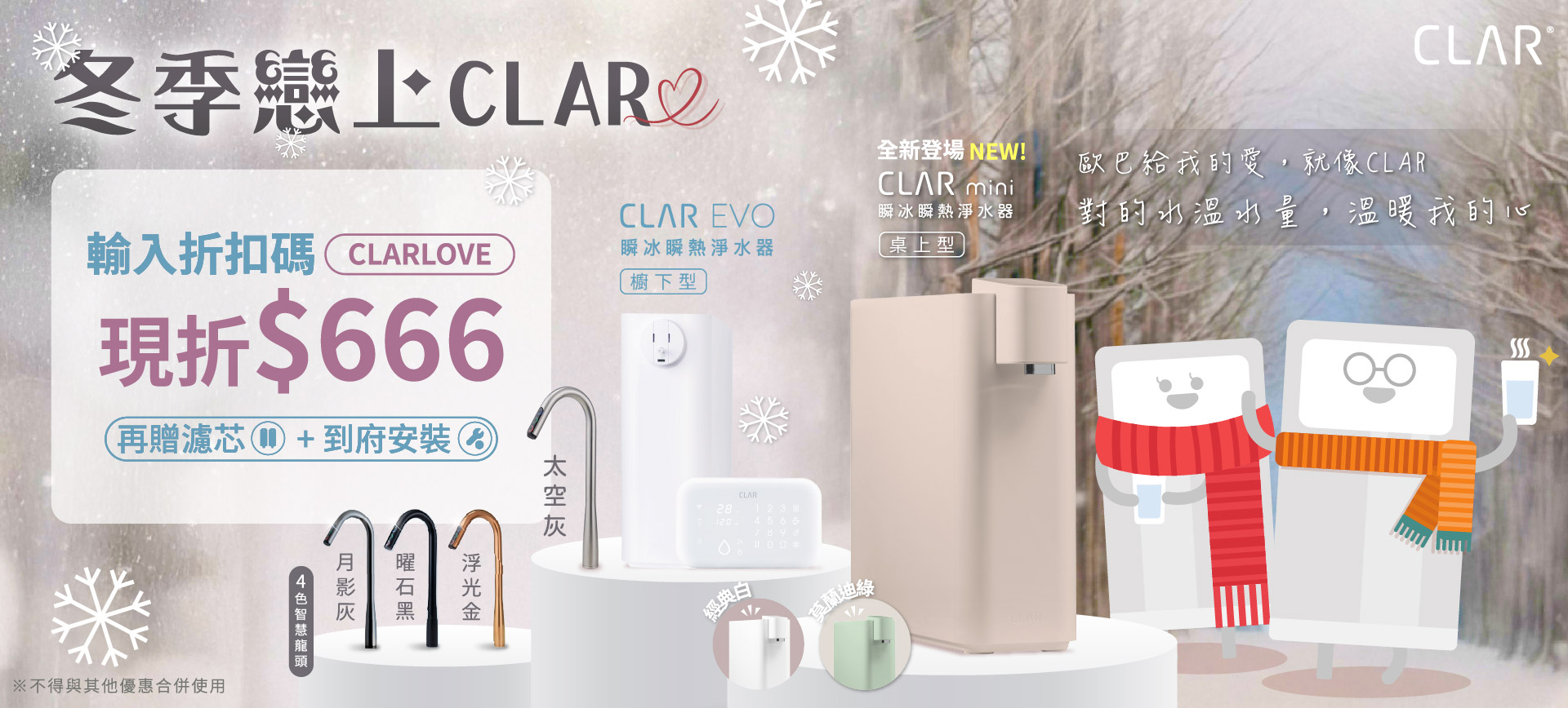 在別的工作室喝到CLAR,覺得口感很不錯當自己家要裝修時馬上列入必買項目。隨時都有熱水(其他度水)可以使用,相當方便!操作上很直覺,小孩也輕易上手!謝謝CLAR 讓生活有更美好的體驗