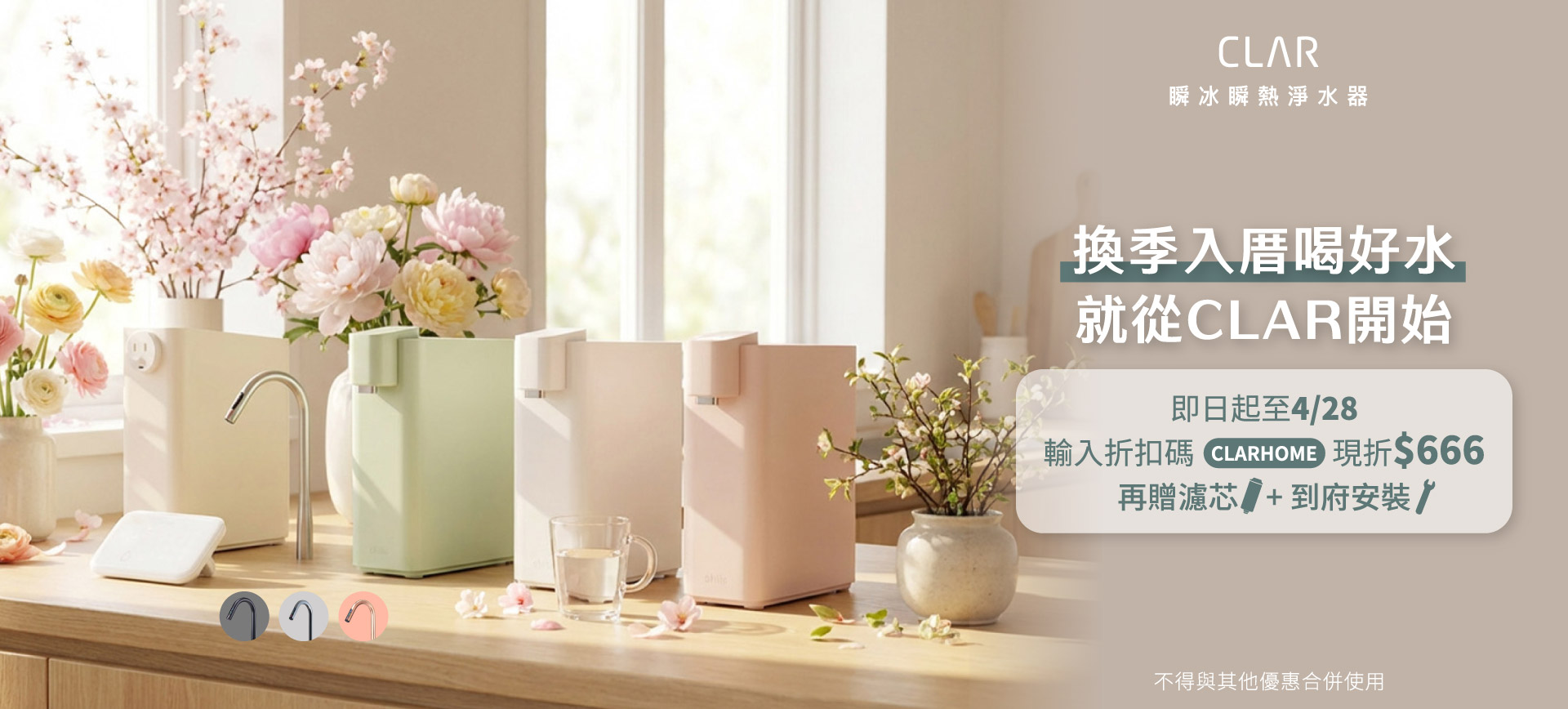 新家裝潢期間就在尋找適合的飲水機,剛好等到Clar推出新一代的瞬熱版本,想要出水幾度,出水幾CC都能設定,尤其是濾心直接裝在機台內,省下了很多廚下空間