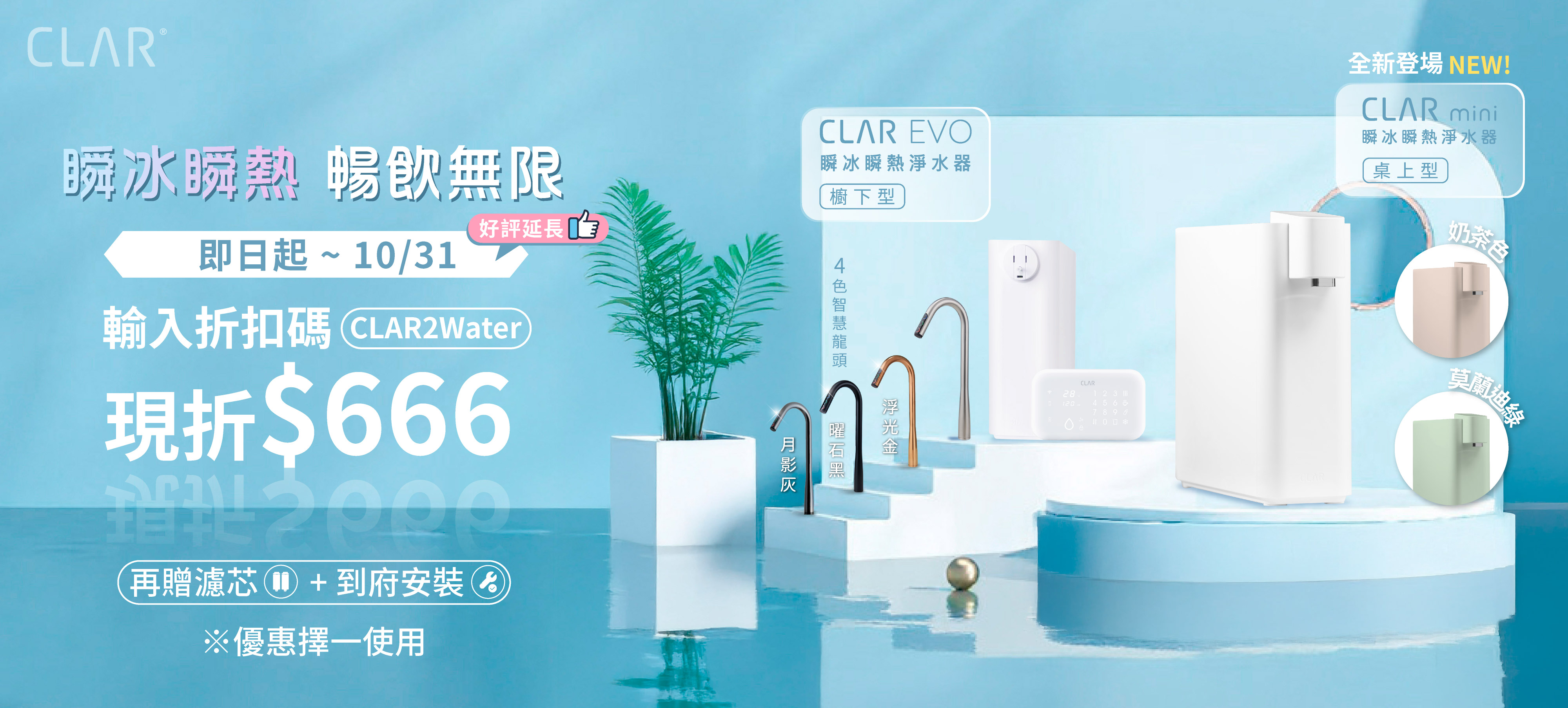 四年前開始使用CLAR,身為產品設計師對功能和產品外觀的美感要求,決定支持台灣設計和製造的CLAR淨水器,今日升級更輕巧的EVO版 !