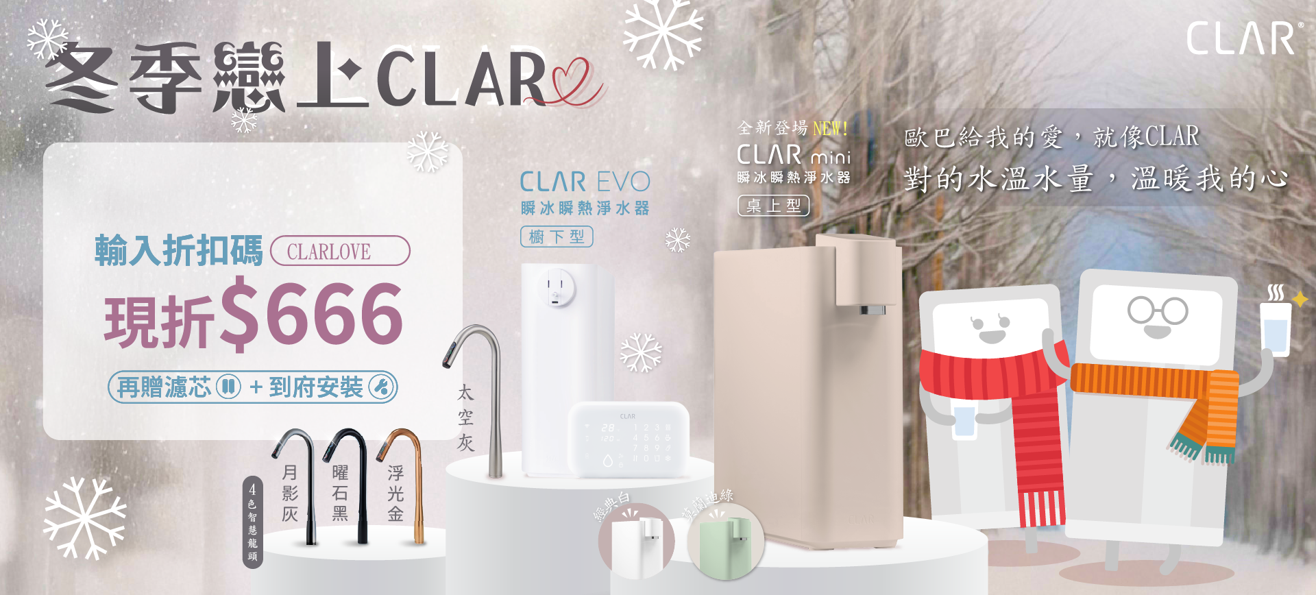 在別的工作室喝到CLAR,覺得口感很不錯當自己家要裝修時馬上列入必買項目。隨時都有熱水(其他度水)可以使用,相當方便!操作上很直覺,小孩也輕易上手!謝謝CLAR 讓生活有更美好的體驗