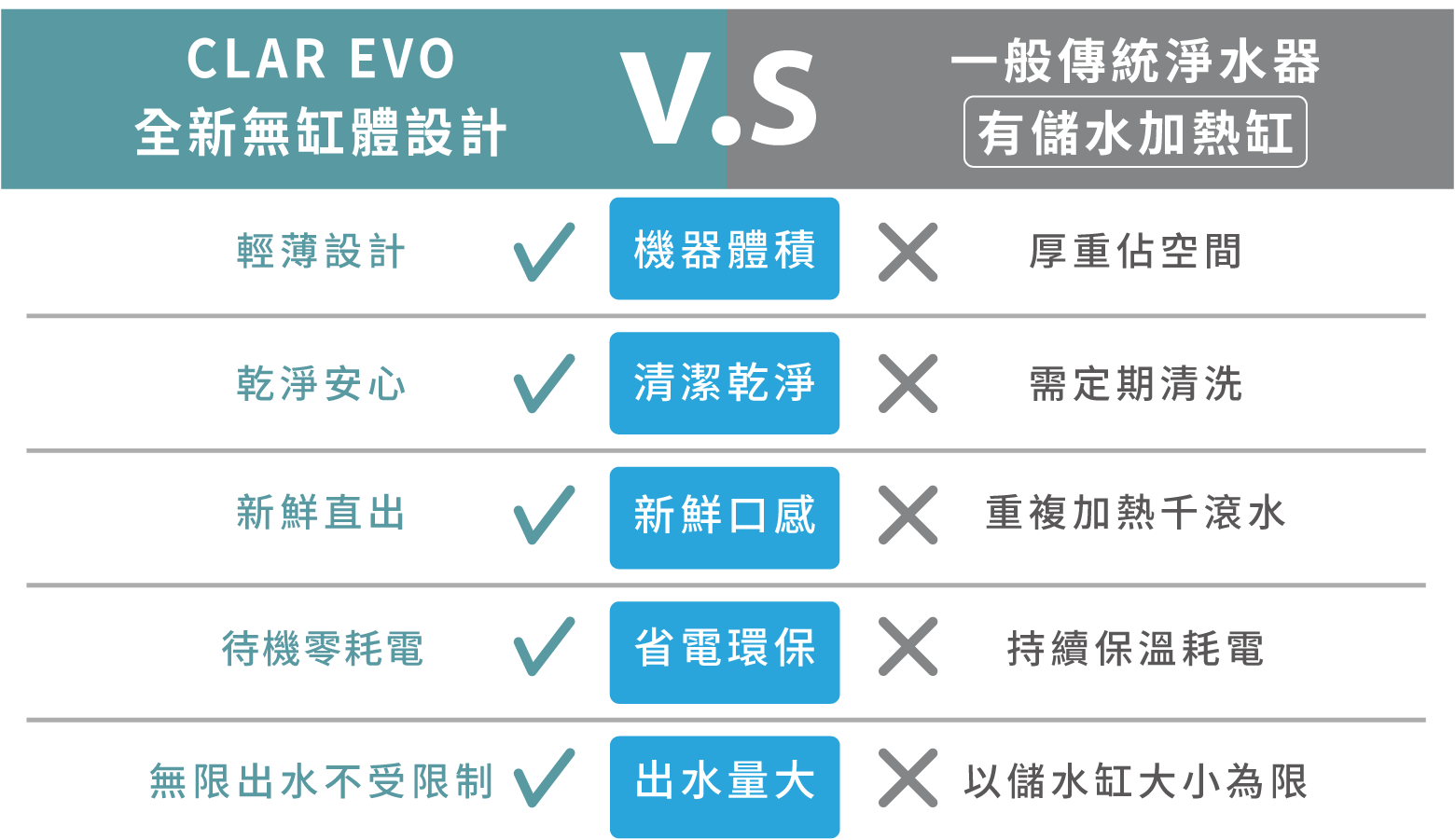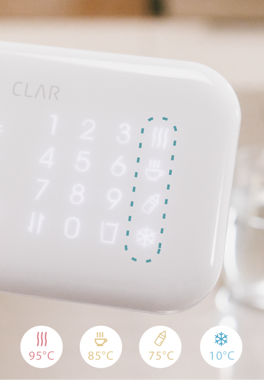 CLAR EVO主機體積小不佔空間,操作面板也很美觀,過濾後的水質喝起來也很甘甜。可以設定想要的溫度、隨時都可以喝到好水真的很方便!