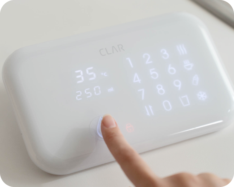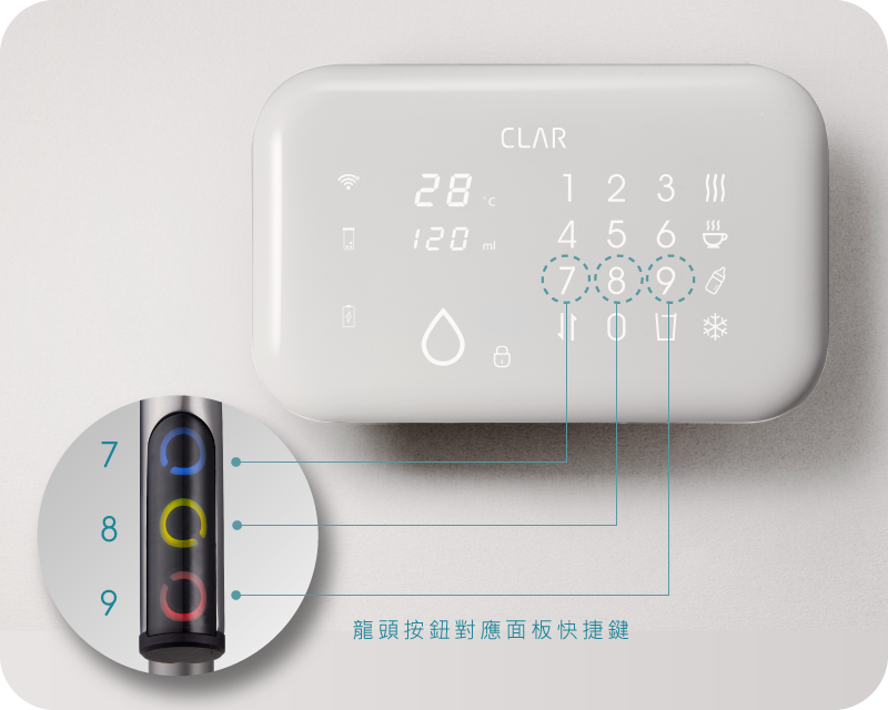 CLAR EVO可直接面板操作喜歡喝的水溫及水量,非常方便,原本不愛喝水的兒子也因為面板操作的關係愛上喝水~體積小也解決了日系廚具下方空間的問題,非常喜歡