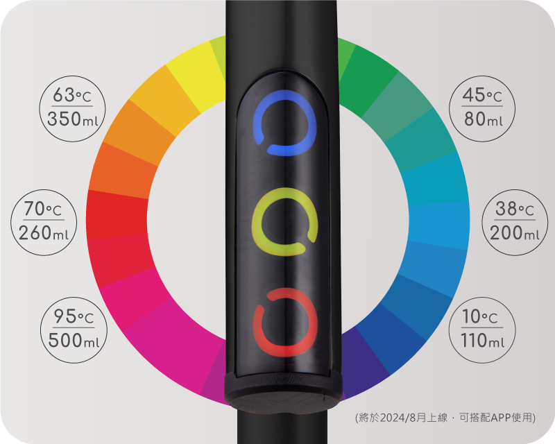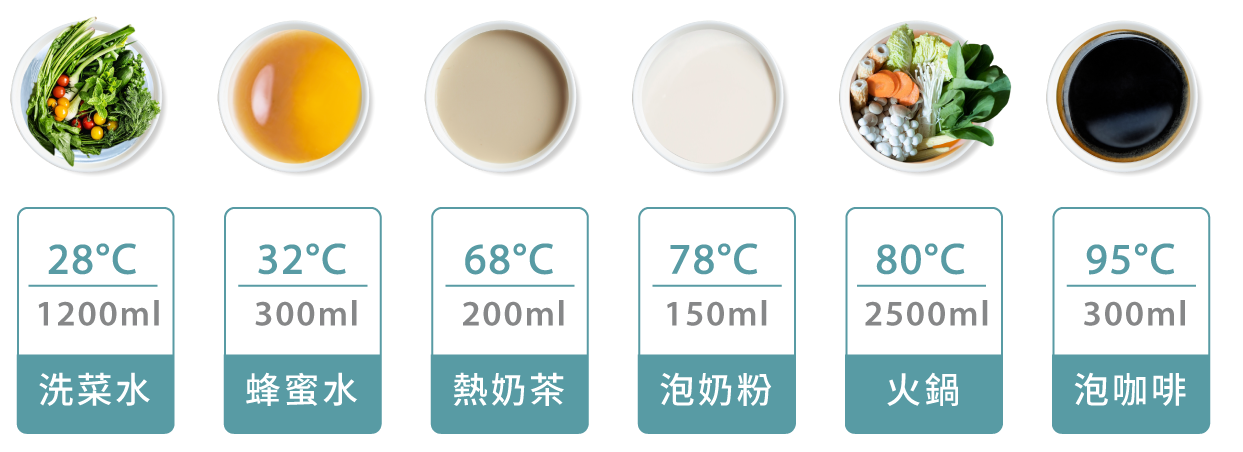 常溫 - 95 度無段式溫度選擇,泡茶、泡奶、泡咖啡輕鬆搞定, 水量自由選擇,不管大杯小杯都能滿足每一杯的需求。